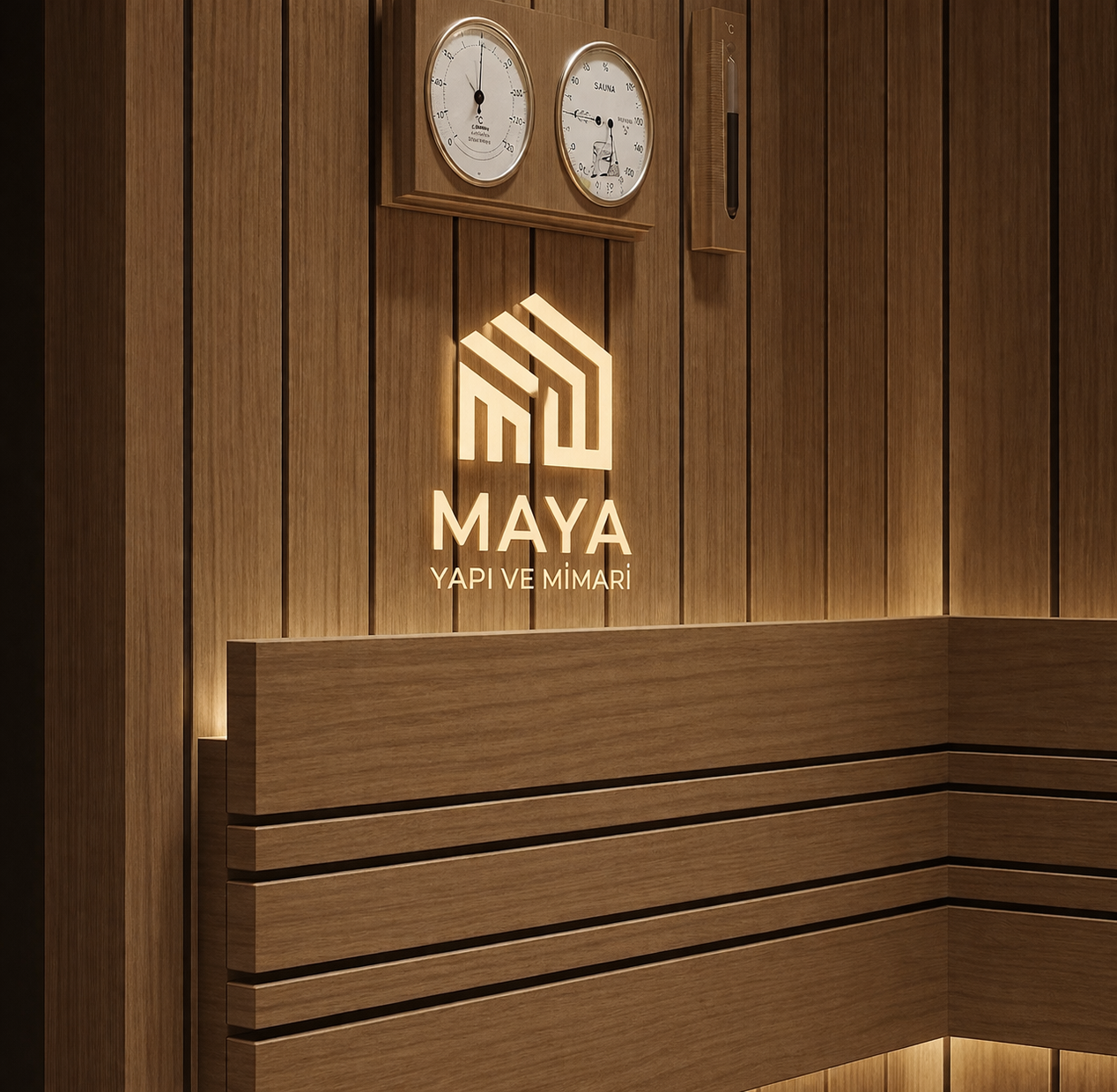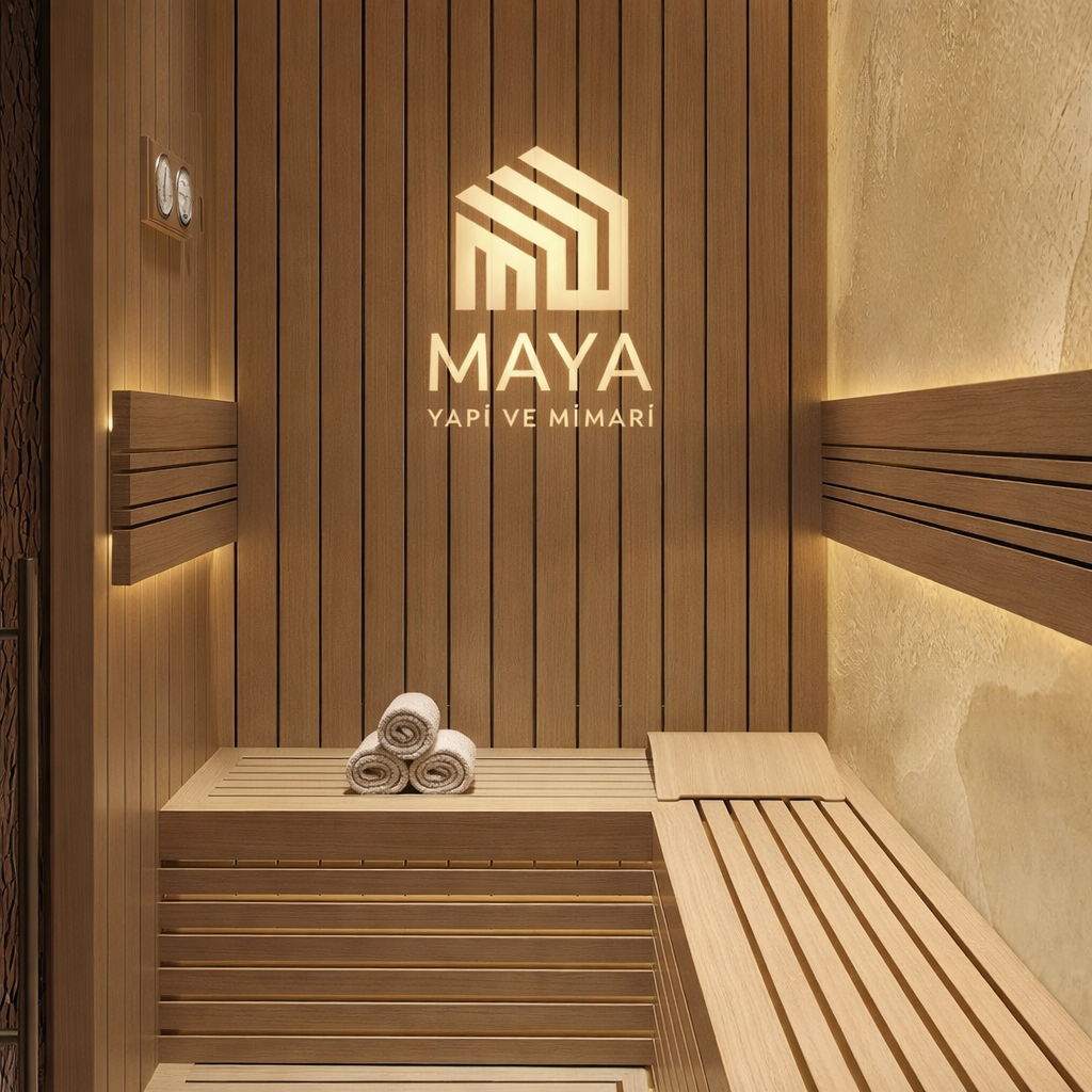 Modern, lüks ve fonksiyonel bir sauna alanı tasarlanmıştır.
